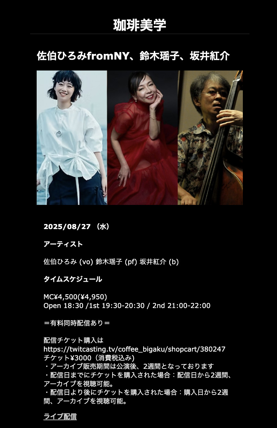 Music Charge:¥4,500.- / Online Streaming:¥3,000.-